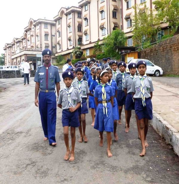 Scouts & Guides hiking to Dharmasthala:-