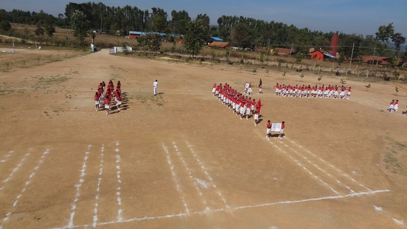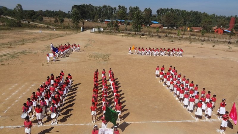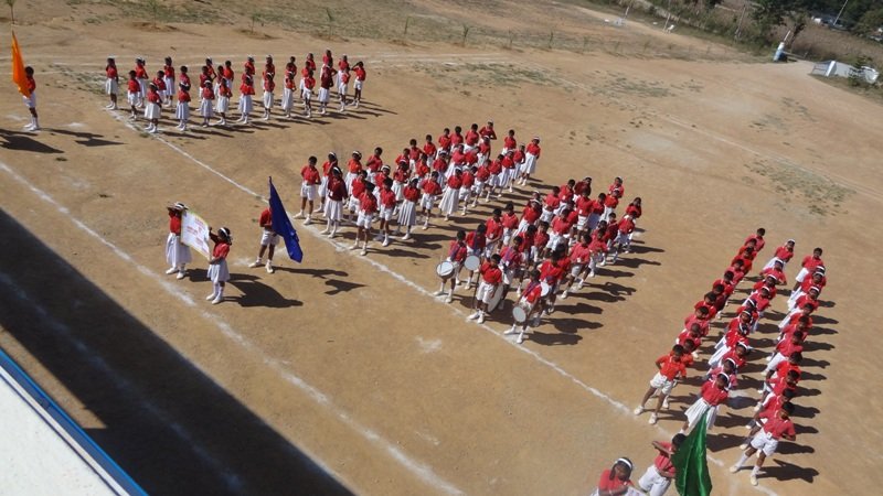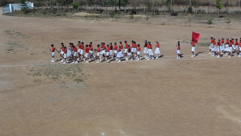 Sports began by hoisting the school flag. The students were