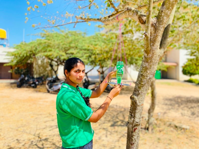 preparing water containers for the birds to satisfy their thrust